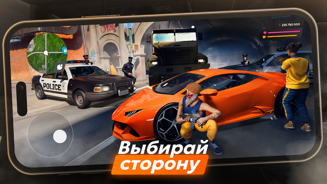 В Vibe City вы начинаете с выбора профессии. Станьте шахтером, строителем, водителем грузовика или даже перевозчиком денег. Для тех, кто стремится к большему, доступны роли полицейского или члена банды. Каждое ваше решение влияет на развитие сюжета и открывает новые горизонты. Реалистичная экономика игры позволяет вам зарабатывать, развивать бизнес или погружаться в теневые сделки.