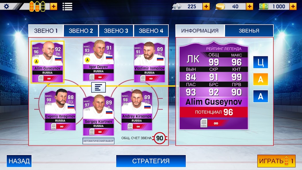 - Собирайте и улучшайте состав, выбирая из тысяч доступных хоккеистов.