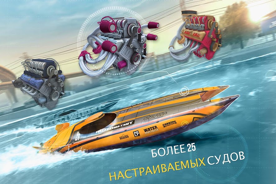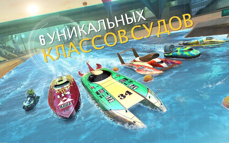 Top Boat: Racing Simulator 3D — это захватывающий симулятор гонок на воде, где вы управляете скоростными катерами и гидроциклами. Ваша цель — стать чемпионом, участвуя в напряжённых заездах и побеждая соперников. Игра предлагает шесть уникальных классов судов, включая катамараны, гидроциклы и суда на воздушной подушке, что позволяет выбрать транспорт под ваш стиль гонок.