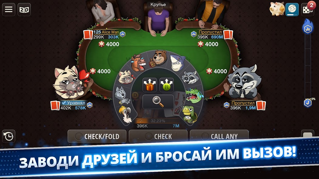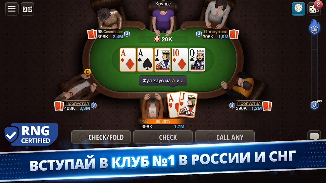 Poker Game: World Poker Club — это увлекательное приложение для Android, которое погружает вас в атмосферу настоящего покера. Здесь вы можете попробовать свои силы в техасском холдеме или омаха, участвовать в турнирах и наслаждаться азартом игры. Виртуальные фишки и бонусы добавляют динамики, а разнообразие режимов позволяет выбрать подходящий формат.