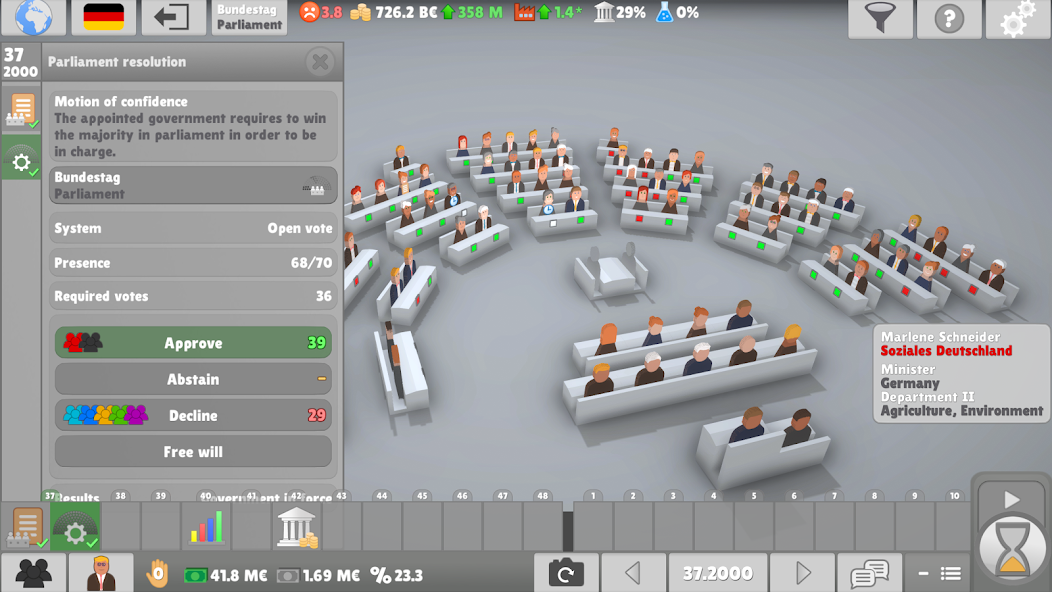 Lawgivers II предлагает два уровня административного управления, где вы можете работать как на национальном, так и на региональном уровне. Вы будете анализировать данные, такие как рост экономики и результаты выборов, чтобы принимать обоснованные решения. В игре доступны три страны: США, Великобритания и Германия, каждая со своими особенностями.