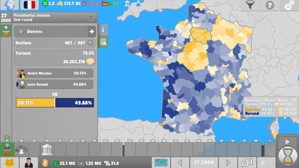 - Участвуйте в выборах, выбирая стратегию для победы.