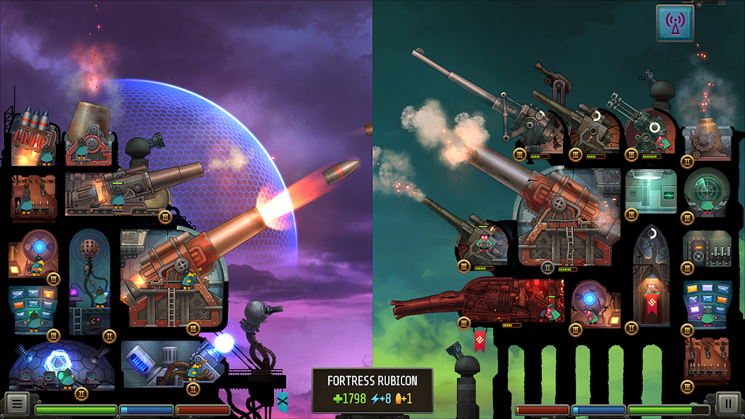 В вашем распоряжении семь уникальных фортов, каждый из которых можно вооружить различными видами оружия и вспомогательных систем. Вы отдаёте приказы, выбираете цели для обстрела, управляете энергией и ремонтными работами. Каждое решение влияет на исход битвы, поэтому важно грамотно распределять ресурсы и предугадывать действия противника.