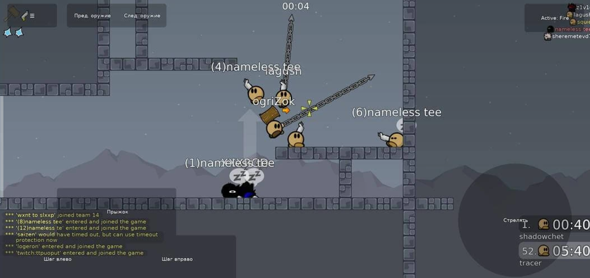 - DDNet: классический режим, где вы проходите карты с разными уровнями сложности — от новичка до профессионала.