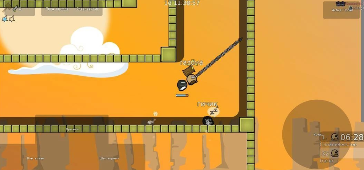 В DDNet вы используете крюк, чтобы преодолевать препятствия, подниматься на высоты и помогать товарищам. Ваша цель — достичь финиша, избегая ловушек и координируя действия с другими участниками. Игра требует точности, реакции и умения работать в команде, что делает каждую карту настоящим испытанием.