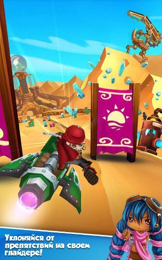 В Sky Punks вы управляете глайдером, лавируя между препятствиями и собирая бонусы. Каждый глайдер обладает уникальными характеристиками, а персонажи имеют свои способности, которые можно улучшать. Вы можете выбирать между атакой соперников на трассе или сосредоточиться на сборе монет, чтобы разблокировать новые возможности.
