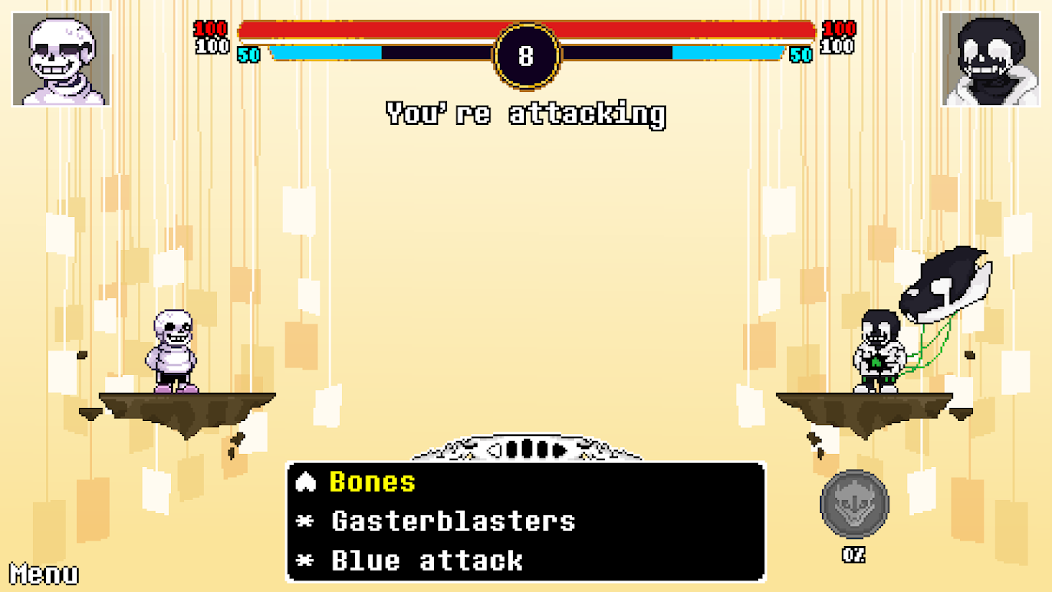 Underverse Battles предлагает широкий выбор персонажей, каждый из которых обладает уникальными навыками. Перед началом боя вы можете выбрать локацию и саундтрек, чтобы создать подходящую атмосферу. Внимательно следите за полосками здоровья, стамины и магии, чтобы эффективно управлять ресурсами. А для любителей кастомизации доступны скины и дополнительные элементы.