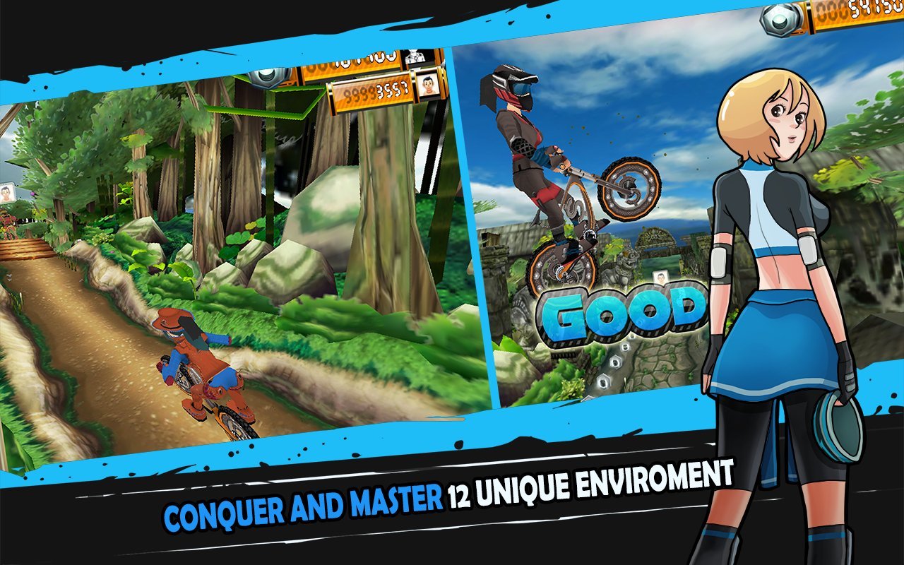 В процессе игры вы изучите более 18 различных трюков, включая «хвостовую плеть», «сальто назад» и «спин-барабан». Успешные выступления приносят монеты, которые помогут улучшить характеристики байка и персонажа или открыть новые костюмы и велосипеды. Эти апгрейды не только дополняют визуальную часть игры, но и существенно облегчают преодоление сложных участков трассы. Развивая способности, вы сможете создавать комбинации трюков для получения большего количества очков.