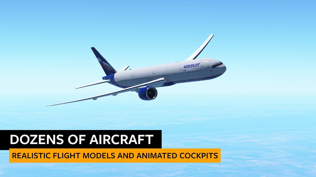 - Разнообразие самолетов. Выберите лайнеры из десятков доступных моделей — от пассажирских до военных.