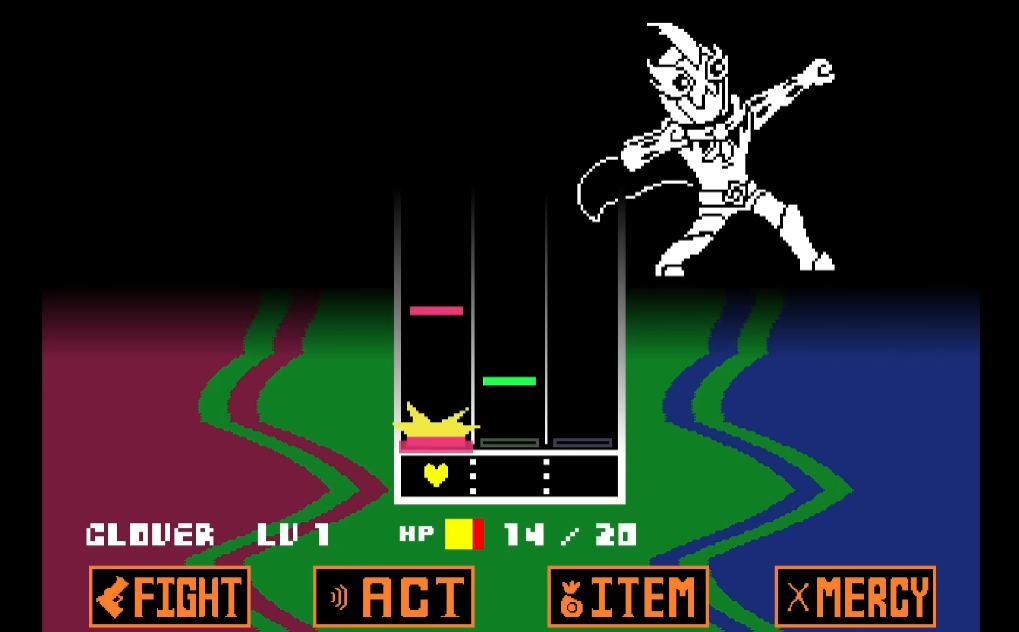 Геймплей Undertale Yellow сохраняет знакомую механику выбора между битвой и милосердием, но добавляет уникальные элементы. Вместо стандартной овальной зоны атаки используется круговая мишень, где точность выстрела определяет силу удара. В то же время система уклонения от атак остаётся верной оригиналу, что добавляет динамики в сражения.