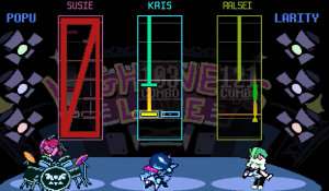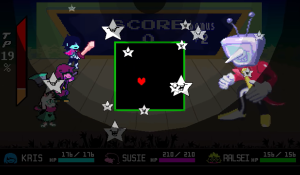 Основные механики игры сосредоточены на пошаговых боях и взаимодействии с различными персонажами. Вы будете избегать смертоносных атак врагов в формате bullet hell, комбинировать уникальные способности своих союзников и прокладывать путь через сложные сценарии. Успех в DELTARUNE Chapter 3 зависит не только от ловкости, но и от вашего умения стратегически мыслить и адаптироваться.