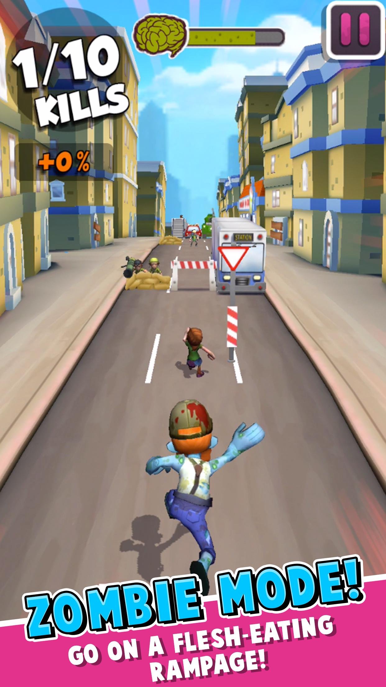 - Бег зомби: проиграв, вы сможете продолжить игру уже в роли мертвеца, преследуя людей.