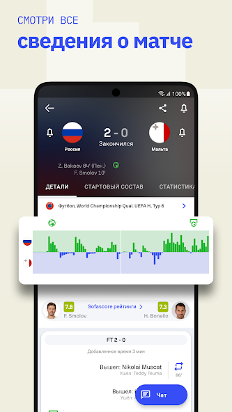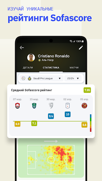 Приложение предлагает детализированную статистику для каждого матча. В футболе это xG, тепловые карты игроков, точность передач и многое другое. В баскетболе – карты бросков, фолы и подборы. Даже если вы не смотрите матч, данные помогут понять, что происходит на поле.
