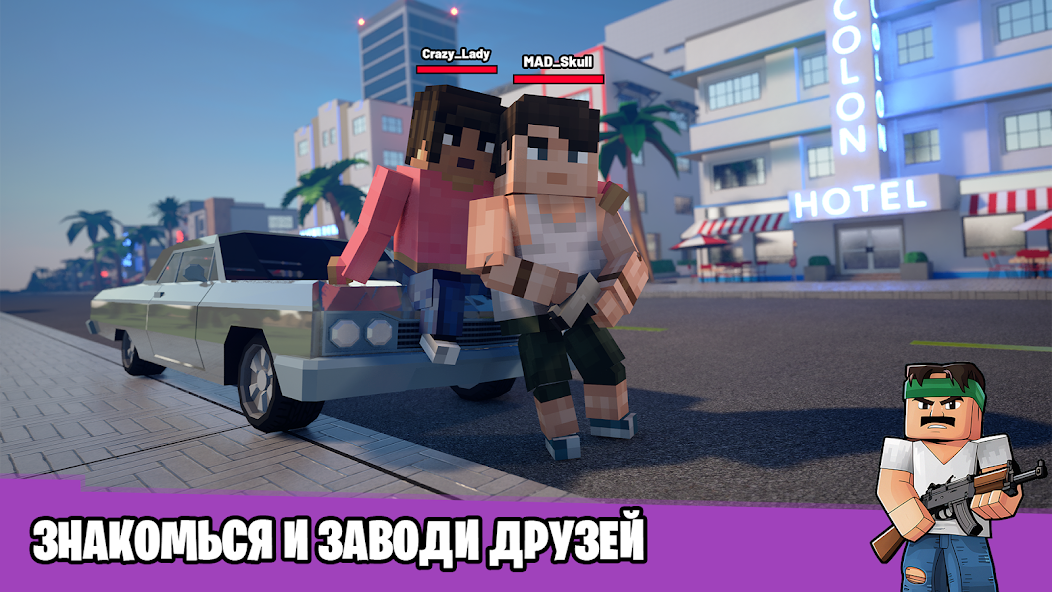 В игре вы можете не только участвовать в криминальных разборках, но и строить легальный бизнес. Покупайте компании, инвестируйте в недвижимость и зарабатывайте деньги. А для отдыха устраивайте вечеринки на яхтах, участвуйте в уличных гонках или просто наслаждайтесь жизнью в роскошных апартаментах. Block Crime Sandbox предлагает вам стать частью динамичного мира, где каждое ваше действие имеет значение.