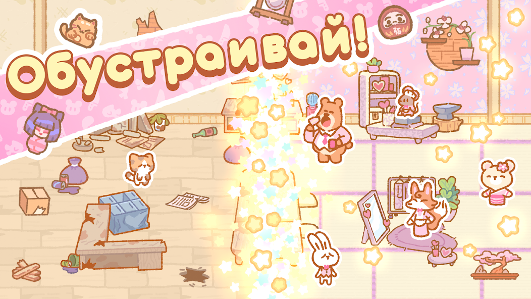 - Рекрутинг и обучение — нанимайте помощников из милых животных, улучшайте их навыки и следите за их работой. Чем выше их мастерство, тем более сложные заказы они смогут выполнять.