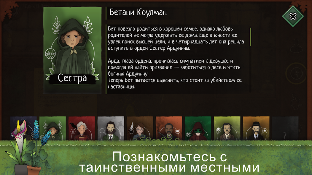 Сюжет игры завязан на расследовании убийства и взаимодействии с мистическими персонажами. Вы будете путешествовать по карте, искать редкие растения и раскрывать секреты, спрятанные в письмах и диалогах. Каждый день приносит новых клиентов и новые загадки, а ваши действия могут привести к одной из восьми концовок.