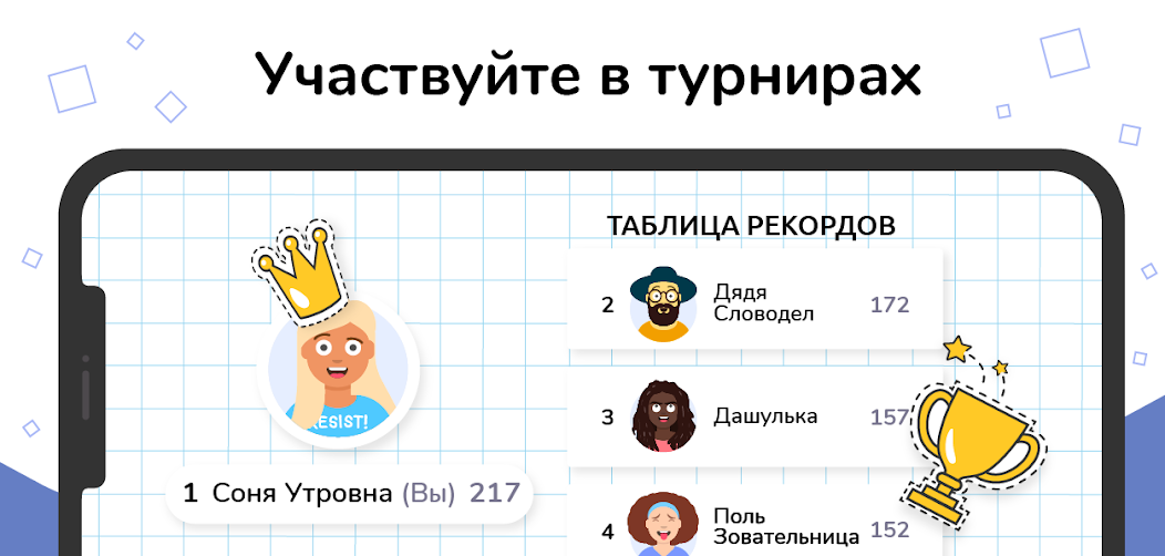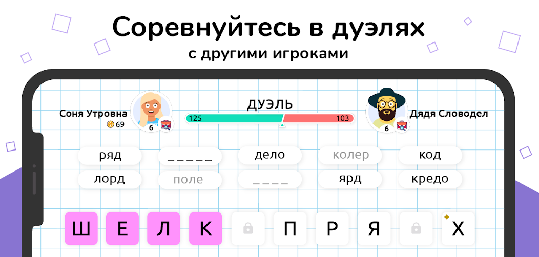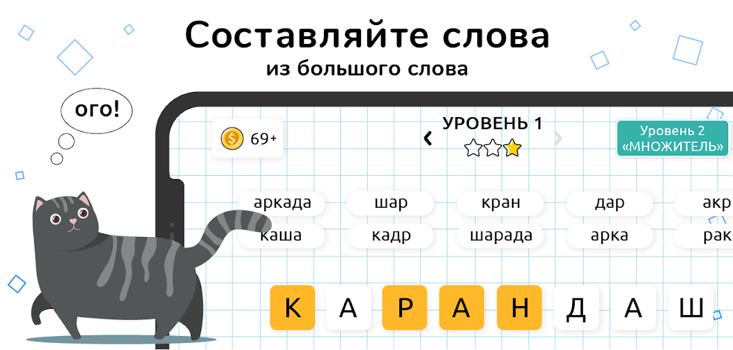 Вам дается слово, из которого нужно составить как можно больше новых. Используются только существительные, что добавляет интереса и сложности. За каждое найденное слово вы получаете подсказки, которые помогут в трудных моментах. Сложность возрастает с каждым уровнем, а система наград и рейтингов подогревает азарт.