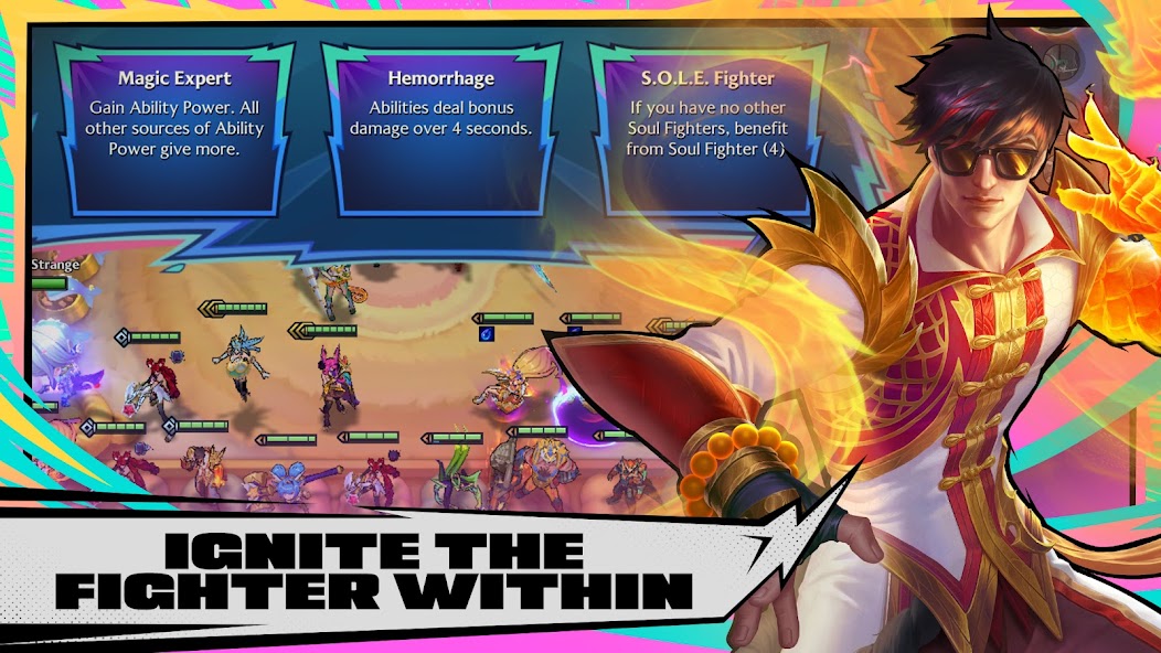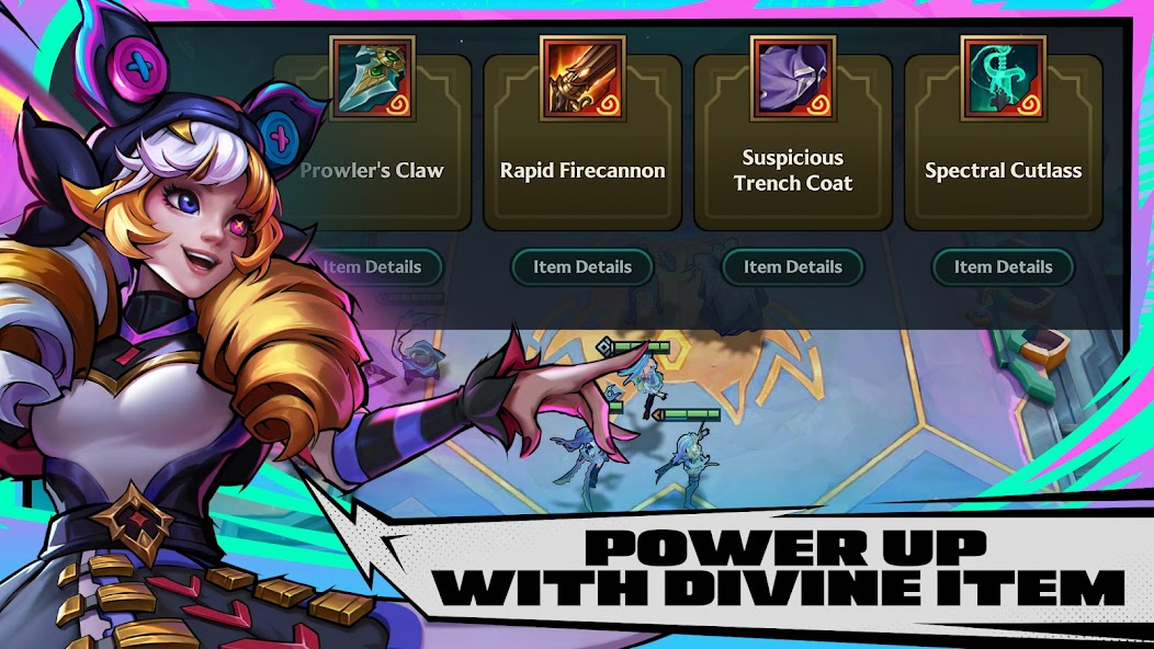 В игре представлено более 60 чемпионов, каждый из которых обладает уникальными навыками. Вы можете повышать их уровень до трёх звёзд, усиливая способности и открывая новые тактические возможности. Особые предметы, такие как легендарная Золотая лопатка, добавляют глубину геймплею, позволяя адаптироваться к любым вызовам.