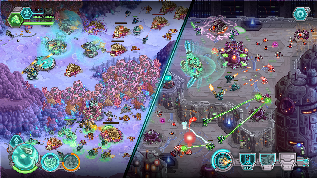 Iron Marines — это мобильная RTS, где вы возглавляете отряд космических солдат, защищая колонии от инопланетных угроз. Вас ждут три уникальные планеты, каждая со своими врагами, миссиями и сюжетом. Ваша цель — не только выжить, но и разгромить врага, используя тактику, ресурсы и героев.