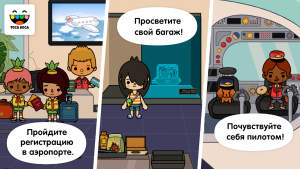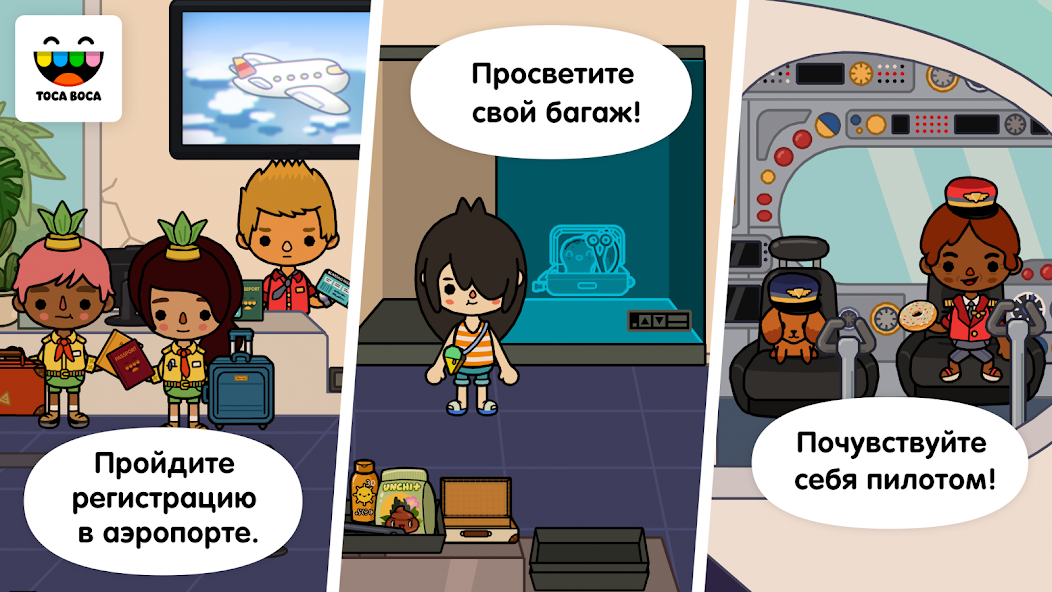 Геймплей Toca Life: Vacation предлагает полную свободу действий в четырех уникальных локациях. Начните ваше приключение с аэропорта, где вы можете пройти через рентген-сканер, изучить кабину пилота или устроиться с перекусом перед взлетом. Прибыв в пункт назначения, вы можете искупаться в океане, сделать покупки в сувенирной лавке или исследовать гостиницу, поднявшись на лифте до шикарного пентхауса. Каждое действие наполняет игровой мир деталями, которые делают его живым и динамичным.