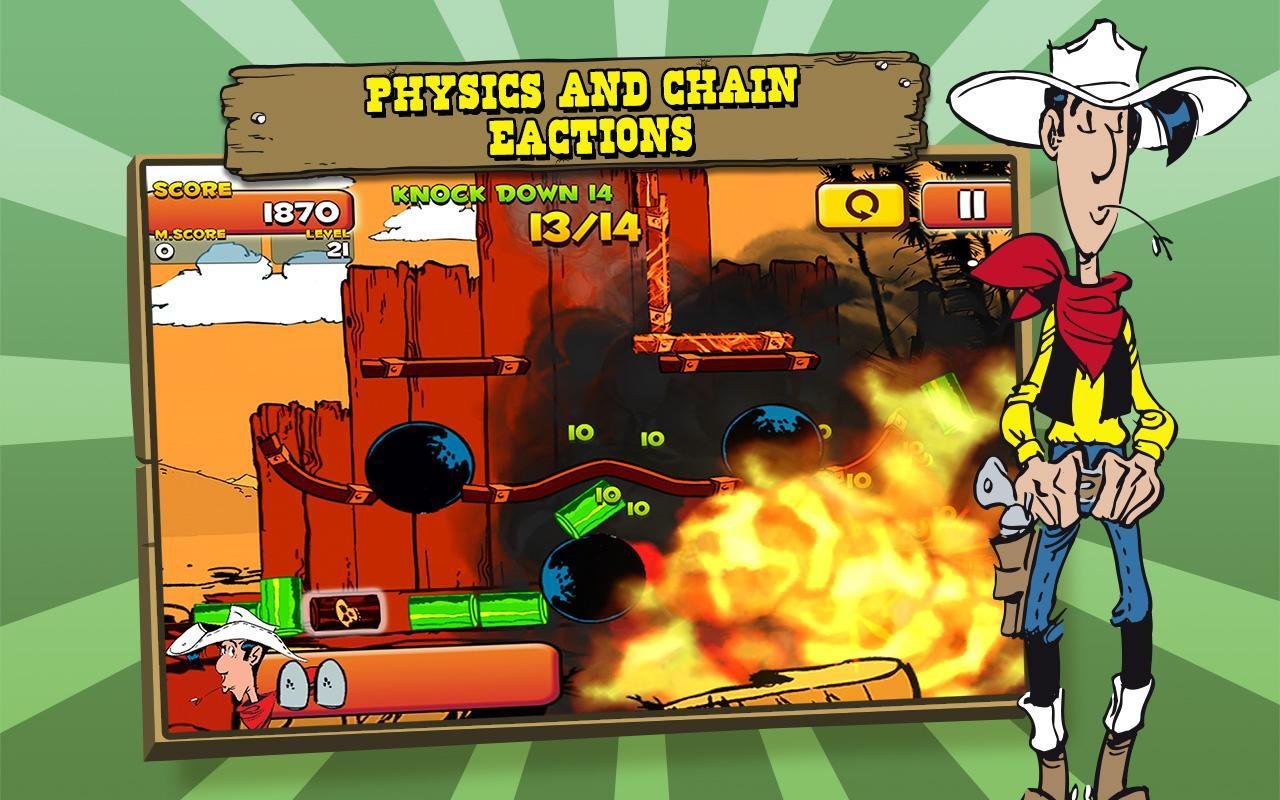 Lucky Luke Shoot & Hit — это аркадный шутер, где вы становитесь знаменитым ковбоем, стреляющим быстрее своей тени. Ваша цель — пройти более 100 уровней, используя логику и точность, чтобы сбивать мишени. Каждое задание — это уникальная головоломка, где нужно учитывать физику и цепные реакции.