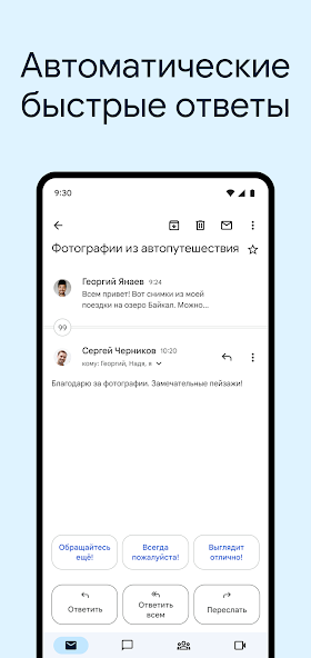 - Напоминания: приложение напомнит вам о письмах, требующих ответа.